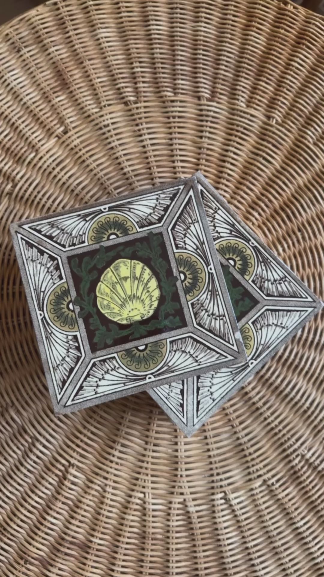 I love these vintage French tiles with shell & seaweed motifs. These would make great coasters, but I am really hoping someone will purchase these to use above a vintage vanity unit for a bathroom 🙏🏼