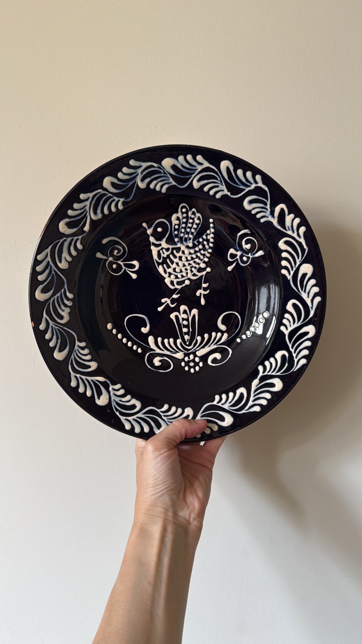 Beautiful Mexican wall plate with hand painted bird and fauna.