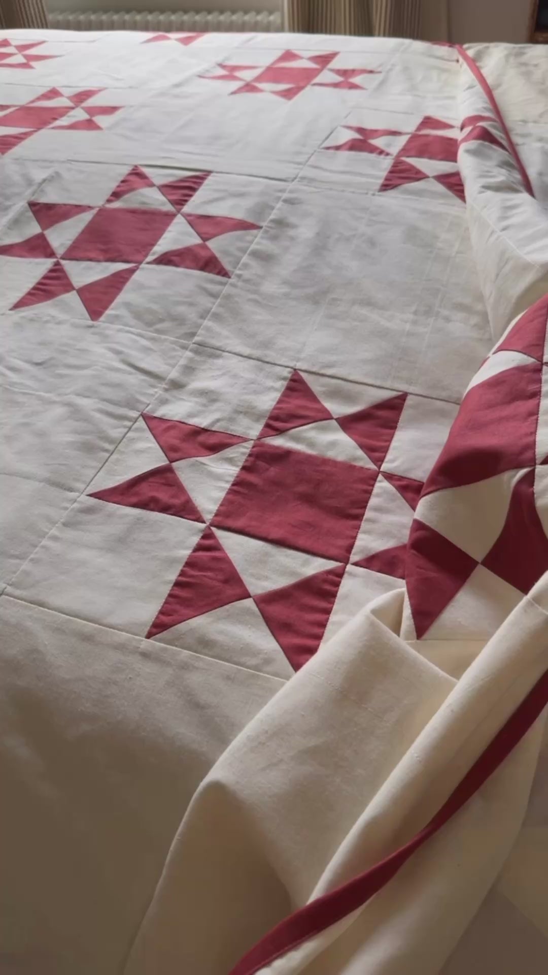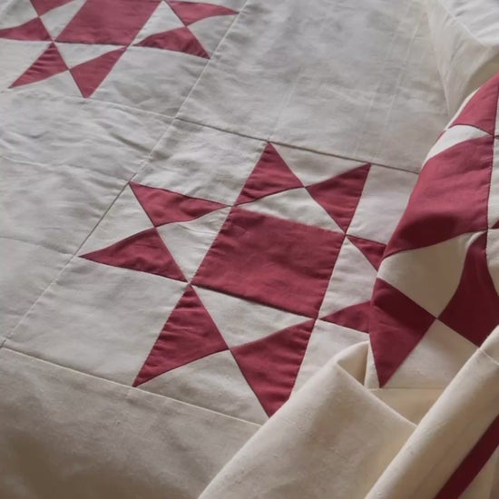 A traditional Americana design, made very simple. Just 2 colours, red and ivory with Ohio stars, made big enough not to over complicate the quilt.